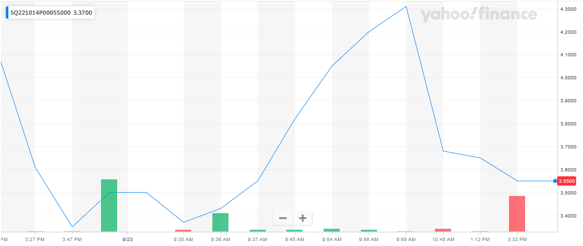 Entered the Block Inc stock trade on Friday, September 23, 2022 at 9:35am for $3.37.