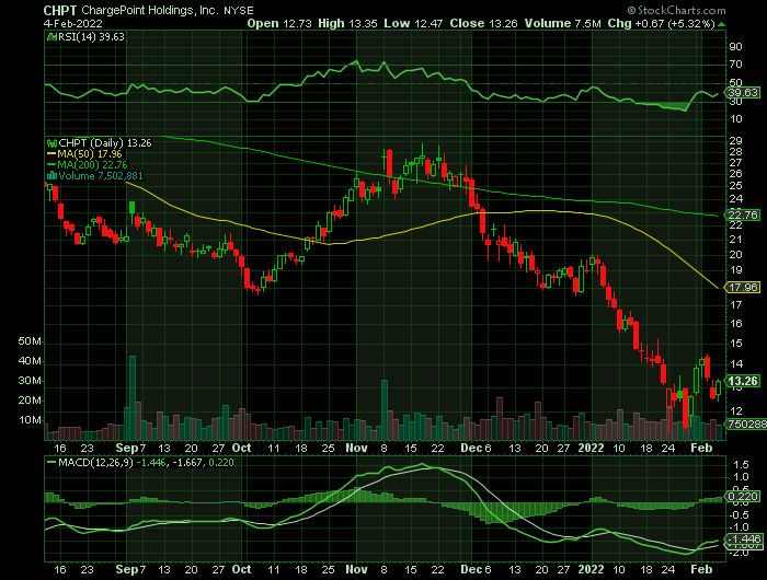 The stock’s fifty day simple moving average is $17.59 and its two-hundred day simple moving average is $20.95. ChargePoint Holdings, Inc. has a 1-year low of $11.21 and a 1-year high of $43.00.