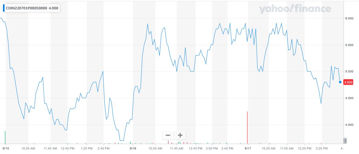 On Wednesday, June 15, 2022, we executed a Weekly Put Option on Coinbase Global providing members with a potential return of 74%.