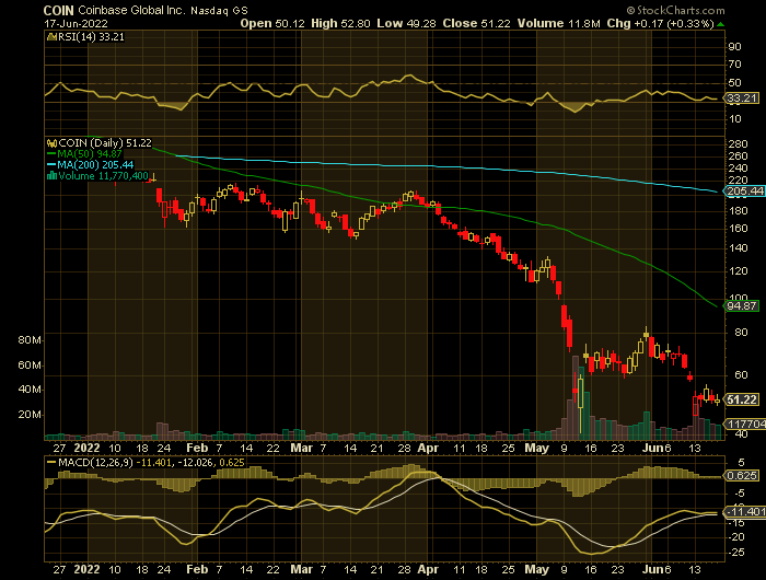 Coinbase Global continues to struggle as cryptocurrency plunges lower. Bitcoin has plunged below $20,000 for the first time since 2020, as tightening monetary policy across the world prompts a flight from riskier assets.