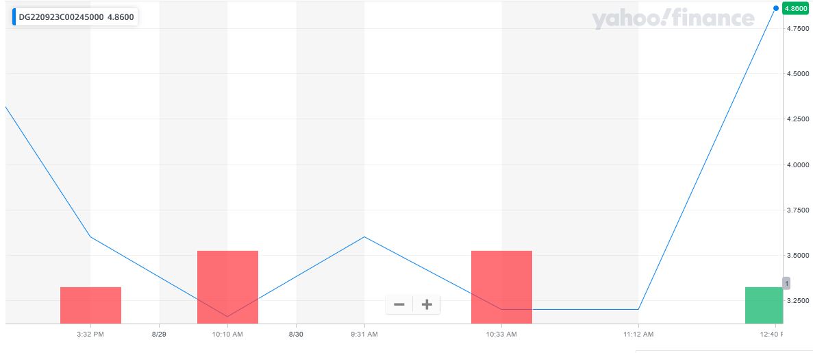 Entered the Dollar General stock trade on Tuesday, August 30, 2022 at $3.20.