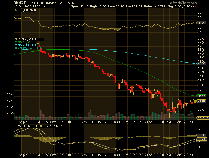 There’s no other way of saying it, it’s been a rough old 12 months for DraftKings Inc. The stock has shed 66% of its value as investors have fled from growth and speculative assets to more safe havens.