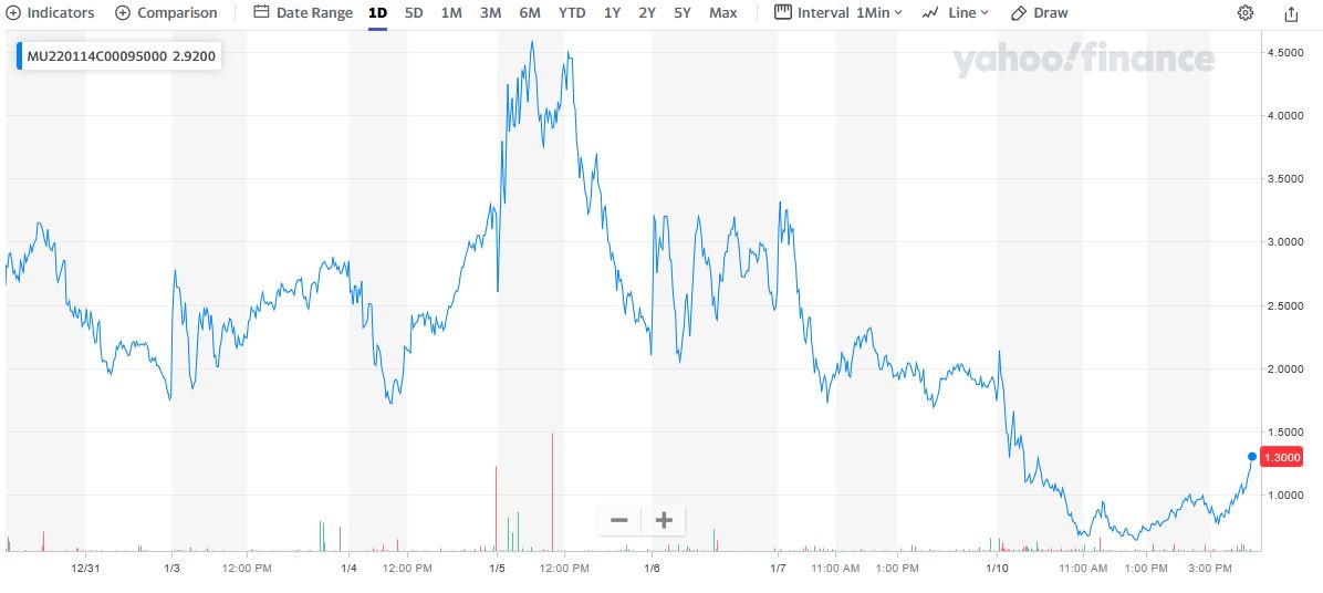 On Monday, January 03, 2022, a Micron Technology Inc Weekly Call Options trade was recommended to our members based on several catalysts.