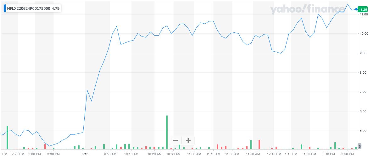 On Tuesday, May 10, 2022, we executed a Weekly Put Option on Netflix NFLX providing members with a potential return of 227%.