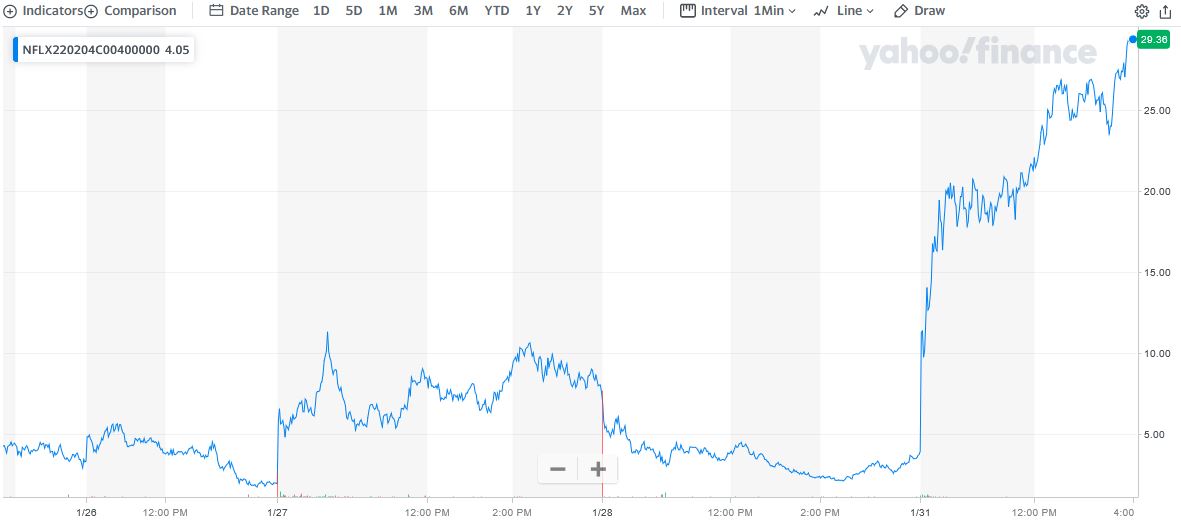 Weekly Options USA Members entered this trade on Thursday, January 27, 2022 – with a choice of two strike prices.