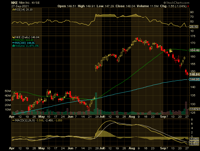 On Tuesday, September 14, 2021, a Nike Inc Weekly Options trade was recommended to our members based on several catalysts.