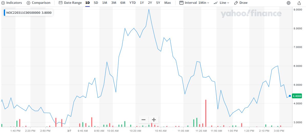 This Northrop Grumman Options Call trade provided a potential profit of 173%.