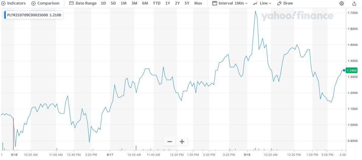 ** OPTION TRADE: Buy PLTR JUL 09 2021 25.000 CALLS at approximately $1.00.