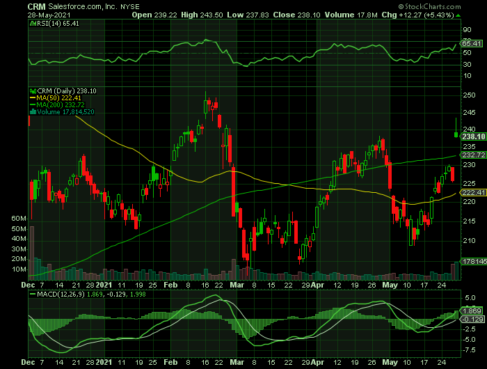 The major catalyst has been the expected Salesforce earnings report which was presented after the market closed Thursday, May 27, 2021.