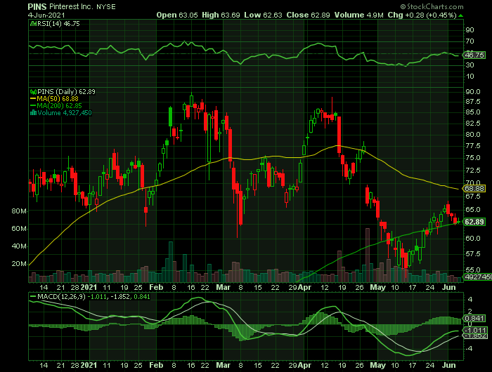 But, it is important to consider adding strong, growth-focused stocks as we head into June that are still trading below their highs as the market bounces back…and, one such stock is Pinterest Inc (NYSE: PINS).