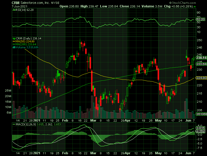 ** OPTION TRADE: Buy CRM AUG 20 2021 250.000 CALLS at approximately $6.30. (Max. $6.80)