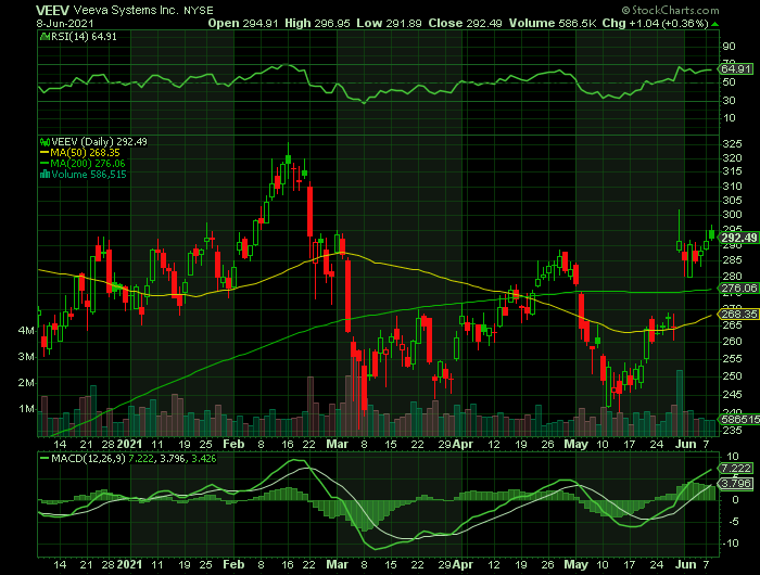 ** OPTION TRADE: Buy VEEV JUL 16 2021 310.000 CALLS at approximately $4.50. (Max. $3.80)