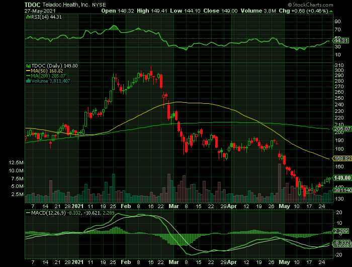 Teladoc Health Inc (NYSE: TDOC), a telemedicine and virtual healthcare company, is one of those stocks that has pulled back; but is looking attractive at current levels of around $150. TDOC stock is trading at the same levels it was at in March 2020, compared to the S&P which has moved up 87%.