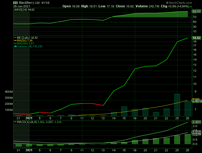 ** OPTION TRADE: Buy BB FEB 05 2021 25.000 CALLS at approximately $2.50.
