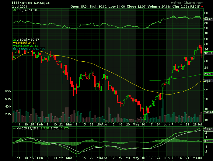 Shares of Li Auto jumped by a staggering 32.48% in 30 days from $24.66 to $32.67 at close of the market on Friday, following the last session’s downward trend.